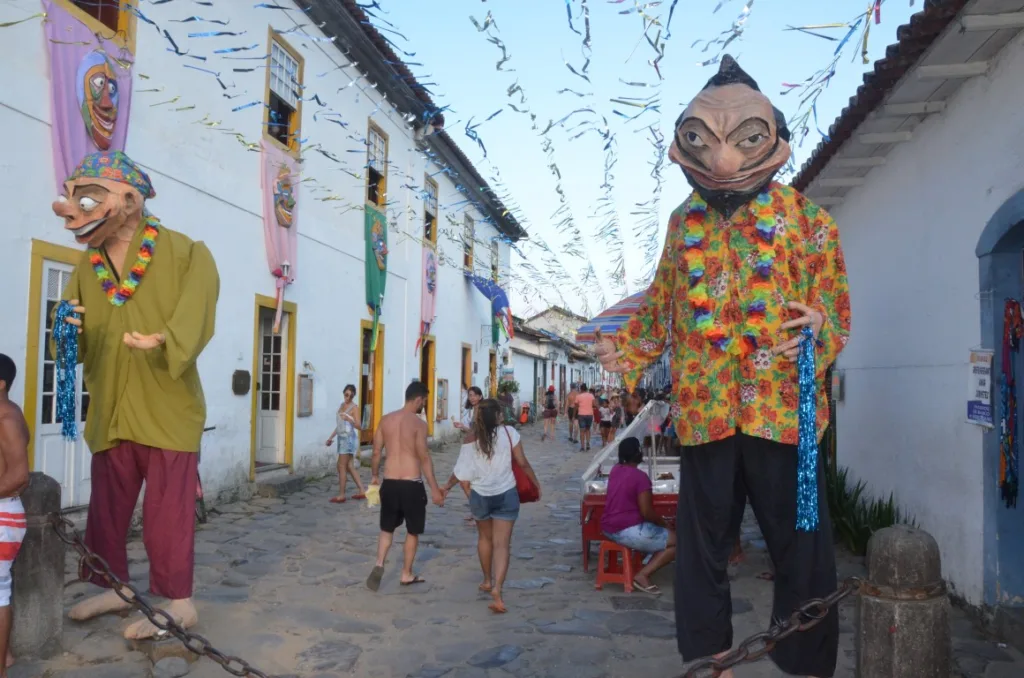A cidade de Paraty celebra o carnaval de rua entre os dias 13 e 17 de fevereiro de 2026. O evento ocupa o Centro Histórico, a Avenida Roberto Silveira, o Jabaquara, o Pontal e diversas comunidades rurais e litorâneas, mantendo a tradição dos bonecões de papel machê, mascarados e blocos locais.
