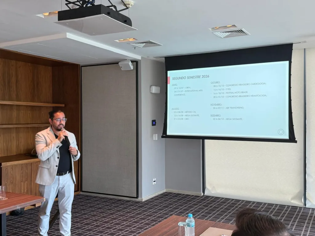 Na sequência, Alexandre Rodrigues, executivo do Lagune Barra Hotel, representando o Riocentro, apresentou o calendário de eventos previstos para realização no RioCentro em 2026. Theresa Jansen destacou ainda o impacto de eventos como Rio Oil & Gás, renomeado para ROG, e Rock in Rio, ambos em setembro.