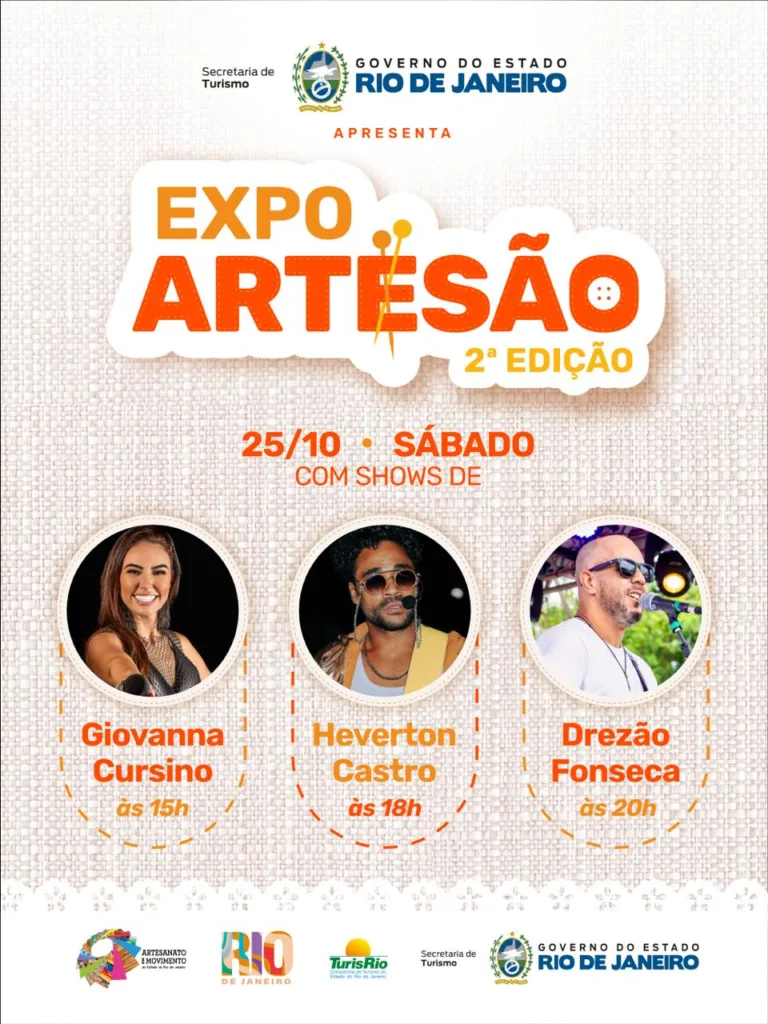 Contando ainda com estrutura completa, incluindo banheiros, a II Expo Artesão proporciona um ambiente ideal para conhecer e valorizar o artesanato fluminense, celebrando a cultura e o talento dos nossos artesãos.