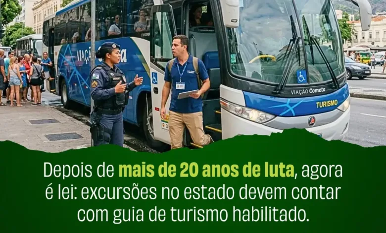 A espera acabou! Uma grande vitória na categoria dos guias de turismo com a regulamentação da Lei Estadual n.º 4.315/2004, por meio do Decreto n.º 50.238, de 19 de março, publicado no Diário Oficial do Estado do Rio de Janeiro nesta sexta-feira, dia 20. Trata-se de um momento histórico para a classe, já que a medida estabelece a obrigatoriedade da presença de guia de turismo local ou regional em excursões realizadas dentro do território estadual, representando um marco aguardado há mais de duas décadas pela categoria.