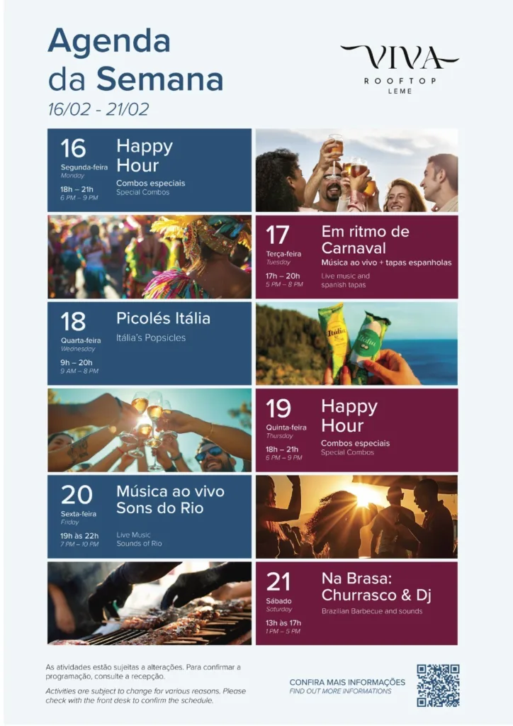 A proposta é transformar os espaços dos hotéis em verdadeiros polos de entretenimento, com música ao vivo, DJs, eventos gastronômicos e ativações de marcas parceiras — incluindo ações de incentivo de vendas com a Picolé Itália e novidades no cardápio, como o Trio del Mar, prato ideal para curtir o rooftop, composto por camarão frito, bolinho de bacalhau e anéis de lula.