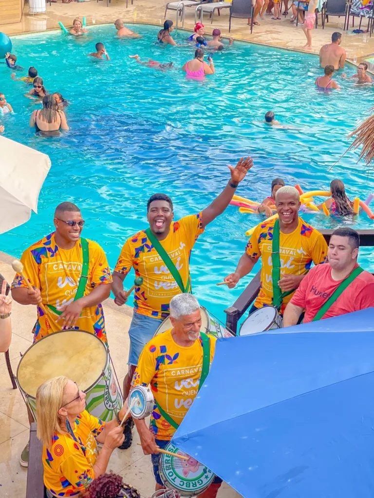 O Carnaval no Hotel Vilarejo Praia começa na sexta-feira, 13 de fevereiro, com um animado Sunset na piscina central, seguido de jantar e da abertura oficial da folia, comandada pelo bloco Beral – o primeiro de uma extensa programação.