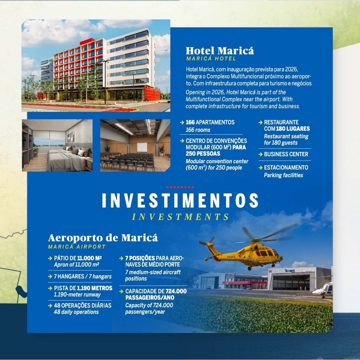 Na feira, haverá encontros com investidores para apresentar em detalhes as vantagens estratégicas do município. Localizada em uma posição privilegiada, Maricá está próxima ao Complexo de Energias Boaventura (antigo Comperj), ao gasoduto Rota 3 – que conecta os poços do pré-sal – e ao futuro Porto de Jaconé, que vai movimentar a economia local.