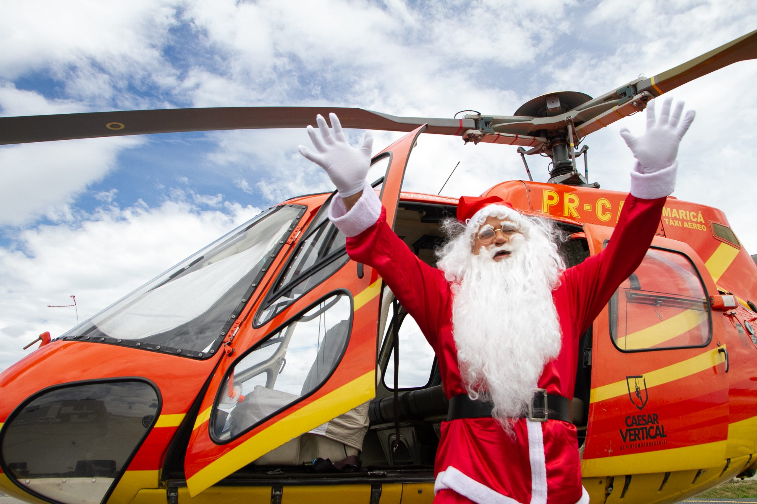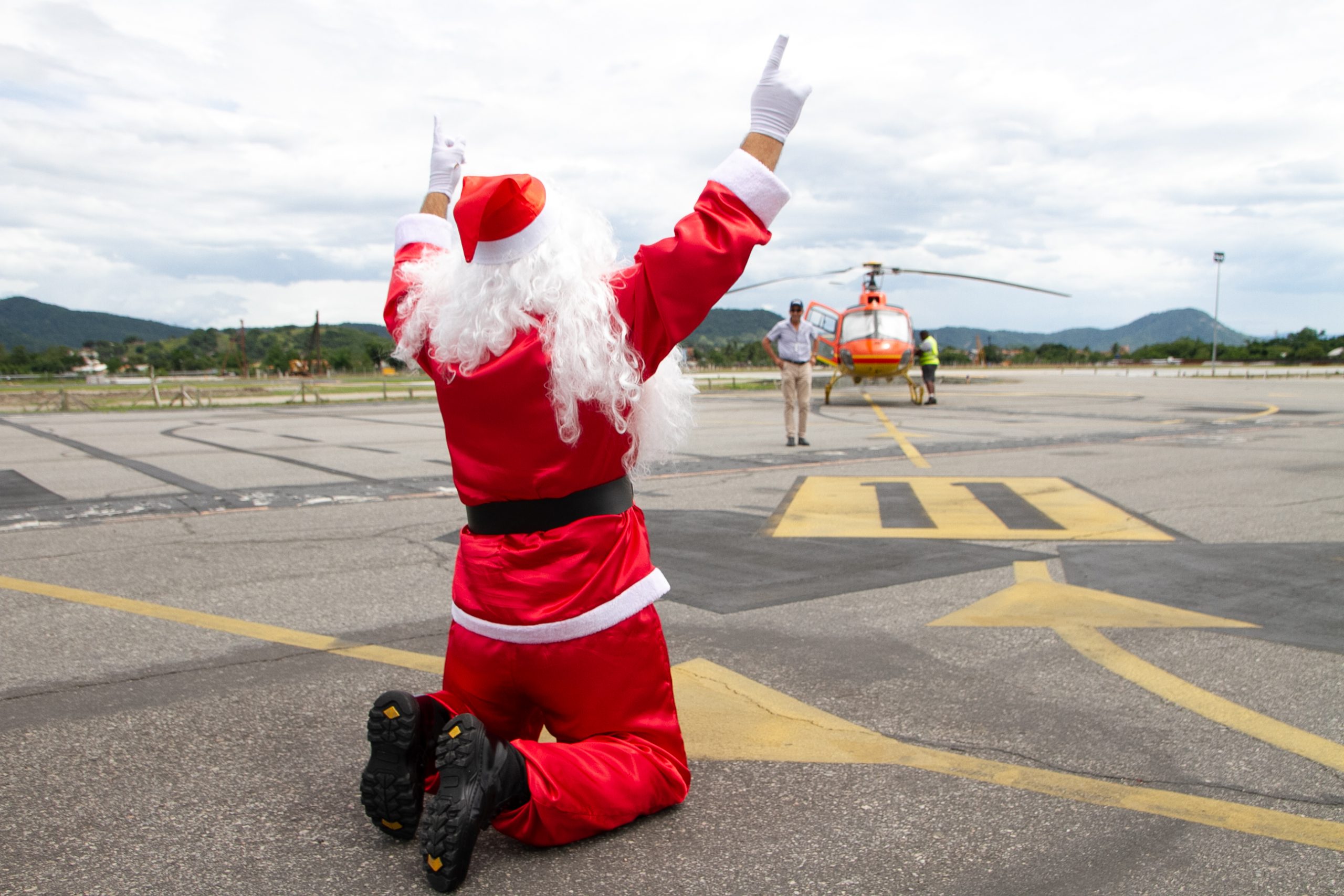 Papai Noel embarca no Aeroporto de Maricá para fazer o Natal de 400 crianças