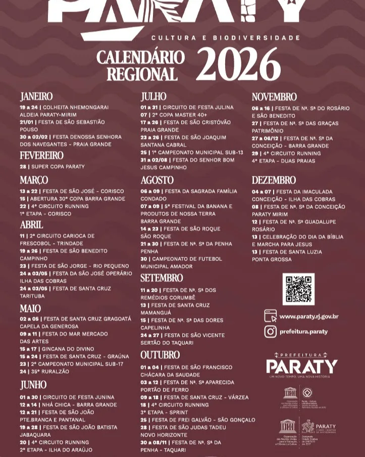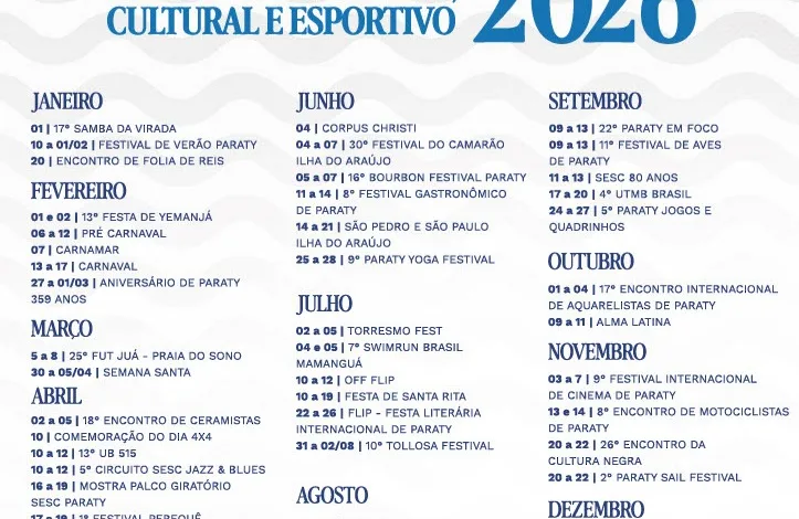Paraty lançou seu calendário oficial de eventos 2026 e a programação está INCRÍVEL! 🌴✨