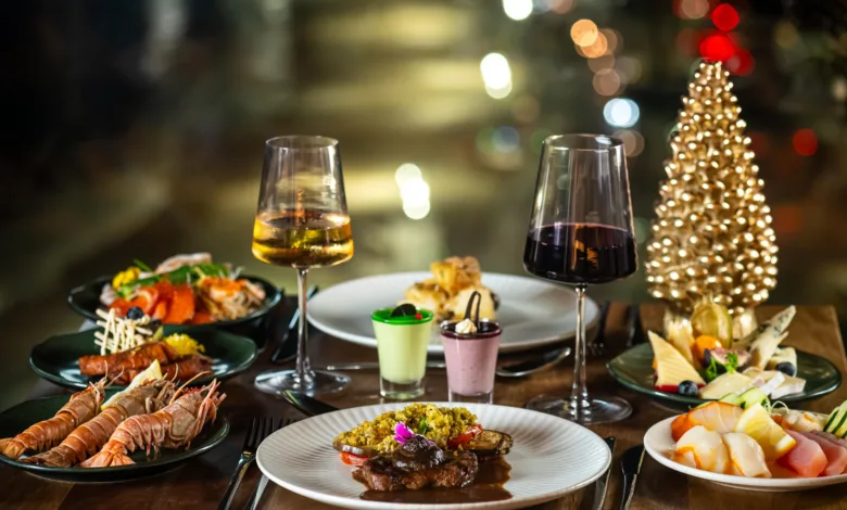 Os pratos principais chegam à mesa com o equilíbrio perfeito entre tradição e sofisticação: Bacalhau gratinado ao azeite e alho confitado, Chester natalino ao molho de damasco, Filé mignon ao vinho do Porto, Salmão grelhado com beurre blanc de limão siciliano, Risoto de camarão com toque de champagne, Ravióli de ricota e espinafre ao molho de parmesão, além de acompanhamentos como arroz de amêndoas e uvas-passas, batata gratinada ao creme e noz-moscada, farofa natalina com frutas secas e bacon e legumes assados com crosta de ervas finas.